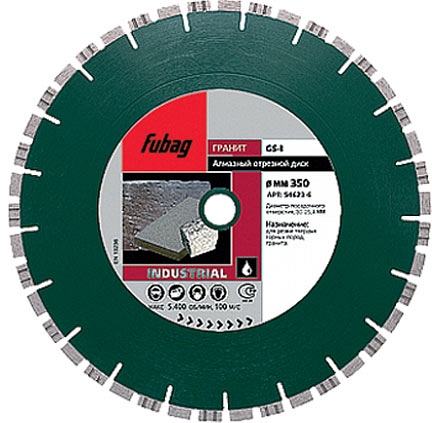 Алмазные диски по граниту и камню Fubag GS-I (Фубаг ГС-И) предназначены для мокрой резки гранита и природного камня. Используются на электрических плиткорезных и камнерезных станках с водяным охлаждением.