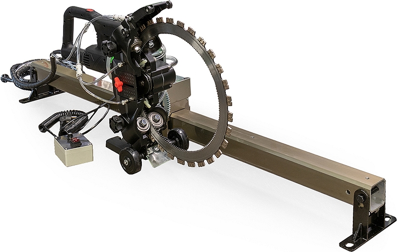 – Позволяет выполнять рез длиной более 1 м - Эргономика и безопасность: оператор находится на безопасном расстоянии от вращающегося режущего алмазного кольца; система "умной" каретки берет на себя физическую нагрузку по перемещению кольцереза
