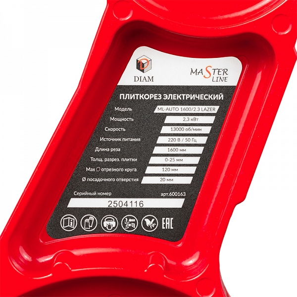 Цена и технические характеристики автоматического электрического плиткореза Diam ML-Auto 1600/2.3 Laser: