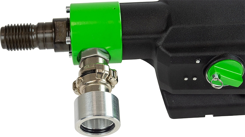 - Идеальное решение для буровых работ, где условия на площадке не позволяют использовать мокрое бурение (пустотелые потолки, предотвращение повреждения водой и т.д.)