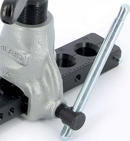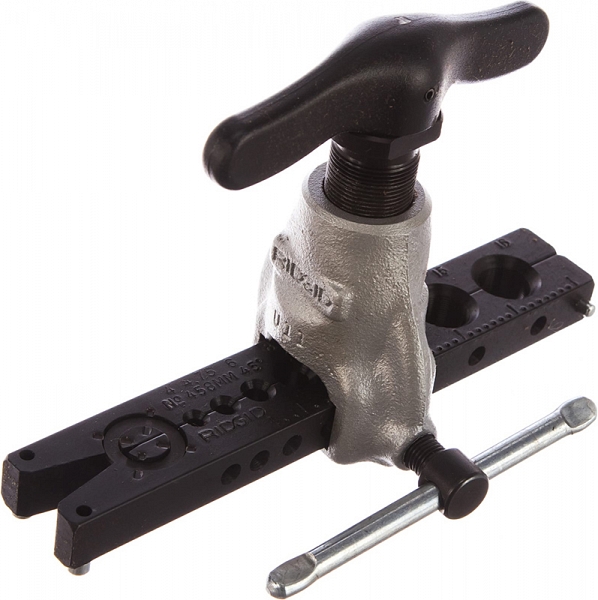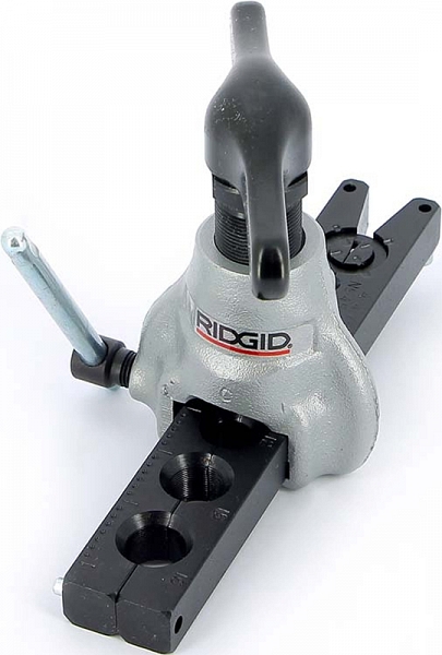 Эксцентриковый развальцовщик труб Ridgid 458MM (Риджид 458ММ) – высокоточный инструмент для развальцовки, эксцентриковый развальцовщик для развальцовки под углом 45° (создания SAE-раструбов 45°) алюминиевых, отожженных медных, стальных, нержавеющих стальных, твердых медных, латунных труб Ø 4 – 4,75 – 6 – 8 – 10 – 15 – 16 мм, толщиной стенки до 0,9 мм (0,035").