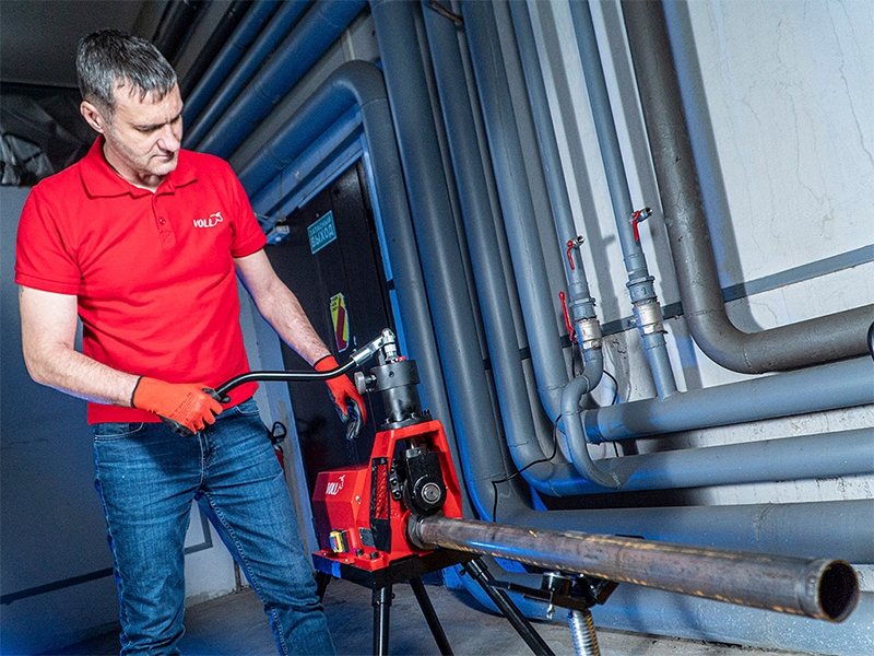 Гидравлический желобонакатчик Voll V-Groover 6 (Волл В-Грувер 6) – электрогидравлический желобонакатный станок для накатки желобков на стальных трубах Ø 1 1/4" – 6". Используется при монтаже без сварки трубопроводных систем водоснабжения, теплоснабжения, пожарной безопасности, промышленных систем.