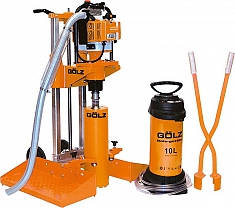Керноотборник для асфальтобетона Golz KB200 (Гольц КБ200) предназначен для контрольного кольцевого сверления отверстий Ø 110 – 280 мм с подачей воды в асфальте, асфальтобетоне и цементобетоне при отборе стандартных кернов для контроля качества дорожных работ, диагностики существующих и приемке в эксплуатацию вновь построенных или реконструированных автомобильных дорог, тарировки георадаров, установки дорожных ограждений, под сигнальные маяки на взлетно-посадочных полосах и т.д.