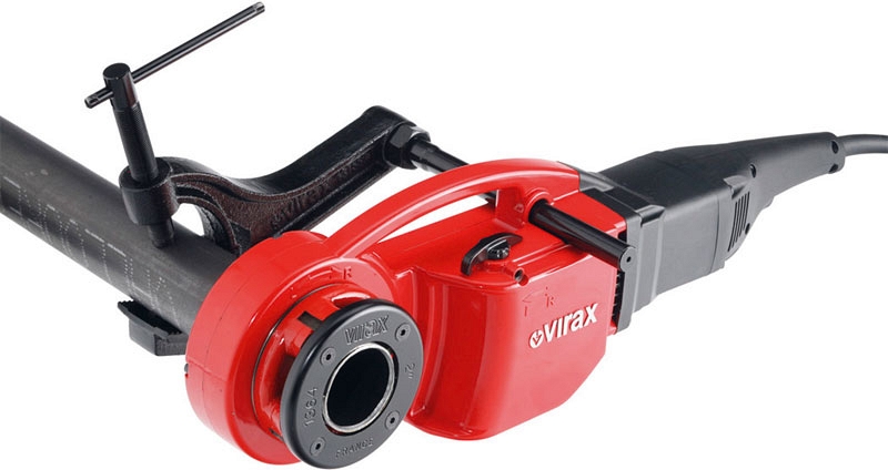 Клупп электрический резьбонарезной Virax Phenix III (Виракс Феникс 3) – клупп трубный ручной для высокопроизводительной нарезки правой конической трубной резьбы BSPT R стандартными резьбонарезными плашками на стальных трубах Ø 1/2" – 2", а со специальным адаптером – Ø до 4".