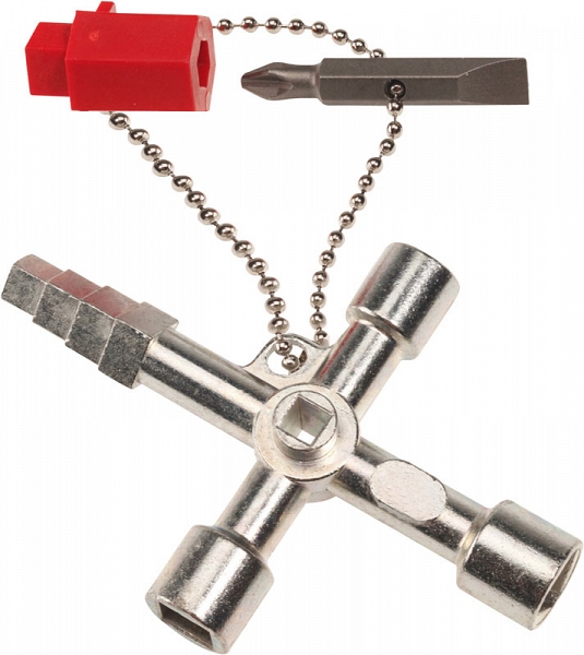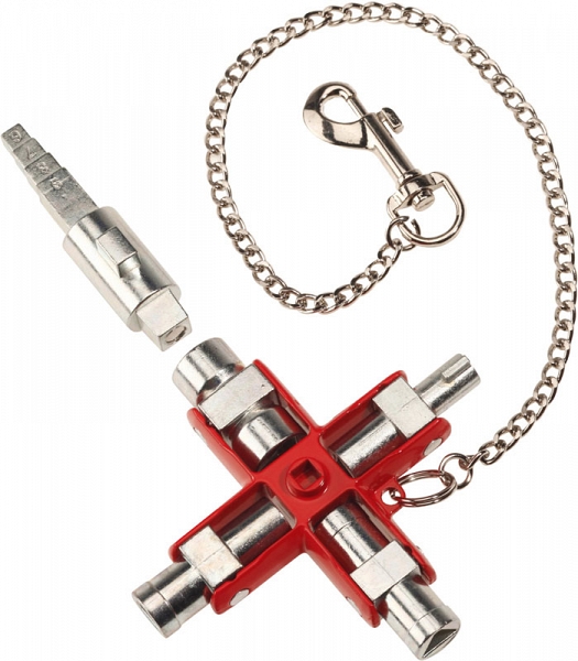 | 261500 | Универсальный ключ с 12-ью головками | Коммуникации, электрические и газовые счетчики, кондиционеры, строительные работы (ручки дверей и окон), слив радиаторов, с квадратной насадкой и магнитом в карабине |