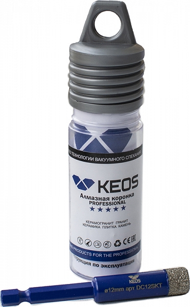 Цена и технические характеристики коронки алмазной по керамограниту Keos Professional Vacuum Brazed 1/4" HEX 12 мм: