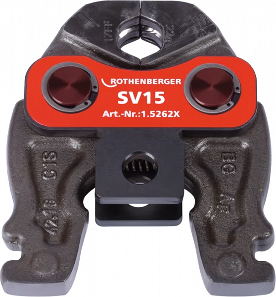 Пресс-клещи Rothenberger Compact SV15 (Ротенбергер Компакт СВ15) в новом качестве материала и изготовления, ориентированные на различные системы производителей обжима медных, нержавеющих стальных труб и труб из цветных металлов Ø 15 мм. Предназначены для аккумуляторного гидравлического радиального пресса Rothenberger Romax Compact.