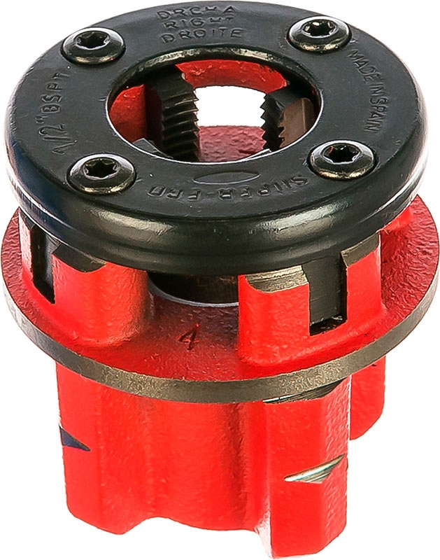 Резьбонарезная головка для клуппа Super-Ego NPT 1/2" (Супер-Эго НПТ 1/2") – плашка для нарезания правой дюймовой конической трубной резьбы NPT на стальных трубах Ø 1/2". Подходит для использования на ручных и электрических резьбонарезных трубных клуппах Super-Ego, Rothenberger и других производителей.