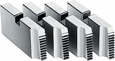 Всего одна универсальная, автоматическая резьбонарезная голова для всех видов резьбы, в том числе длинной резьбы, открывающаяся после нарезания установленной длины конической резьбы. Точная, быстрая установка диаметра резьбы, удобная шкала установки диаметра. Ограничитель для конической резьбы. Быстрая смена гребенок за счет пазового крепления в держателе гребенок. - Резьбонарезные плашки:
