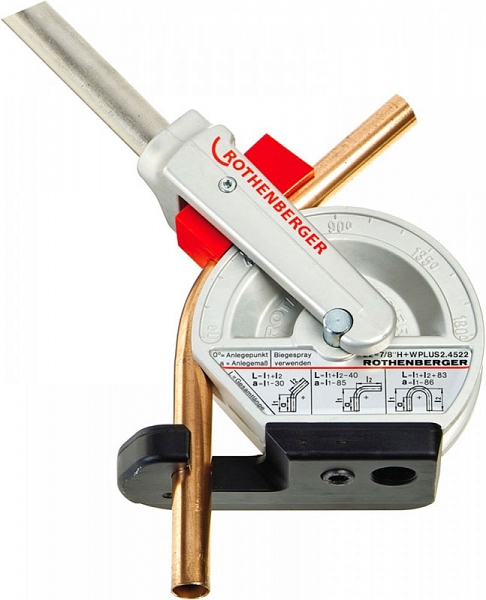 Ручной трубогиб Rothenberger Robend H+W Plus 3/8" (Ротенбергер Робенд Х+В Плюс 3/8") предназначен для точной холодной гибки на угол до 180° мягких, твердых и тонкостенных медных труб, медных труб в оболочке, алюминиевых труб, латунных труб, тонкостенных стальных труб, тонкостенных стальных труб в оболочке, бесшовных нержавеющих стальных труб Ø 3/8" при монтаже сантехнических и холодильных систем, систем отопления и кондиционирования, а также на производствах.