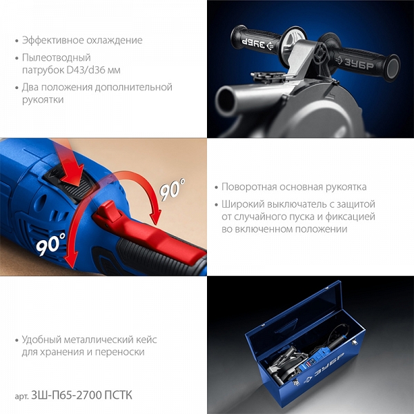 Преимущества штробореза Зубр Профессионал ЗШ-П65-2700 ПСТК: