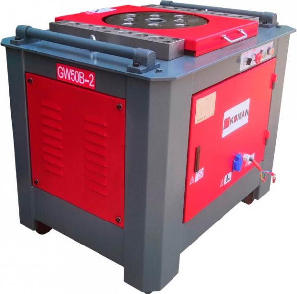 Станок для гибки арматуры Koman GW50B-2 (Коман ГВ50Б-2) – машина для загибания низкоуглеродистой стали, включая трубы, листовую сталь, прокатные уголки и арматурные стержни в различных формах на строительной площадке и на производстве.