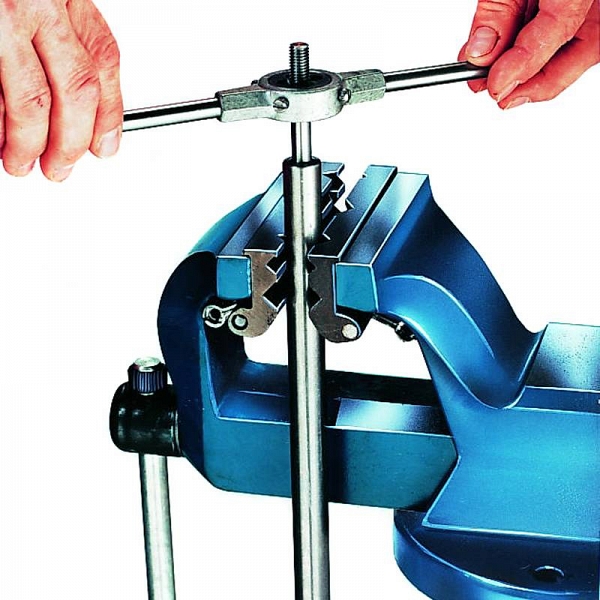- Винт с трапецеидальной резьбой дает возможность быстро регулировать расстояние между губками и защищать механизм от попадания грязи и отходов