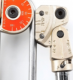 - Двухшаговая конструкция позволяет выполнять гибку на месте от 90° до 180° даже без скрещивания рукоятей, блокировка / разблокировка с помощью вращения гибочной рукояти на пол-оборота