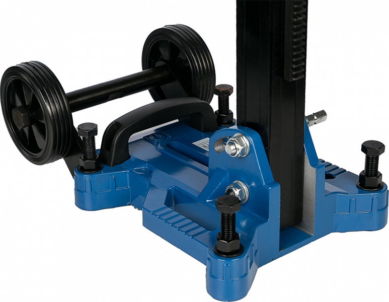 - Транспортировочные колеса позволяют без труда перемещать штатив с уже установленным мотором и коронкой по строительной площадке