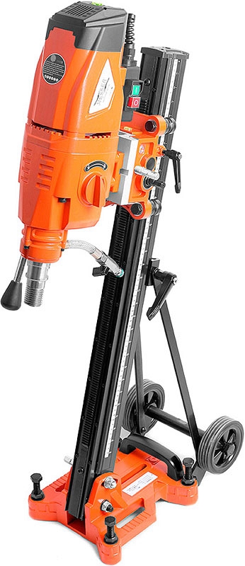 Установка алмазного бурения Messer SM250-DM250 (Мессер СМ250-ДМ250) – легкий и недорогой комплект алмазного бурения для сверления отверстий Ø до 250 мм в бетоне, железобетоне, кирпиче и других строительных материалах, под прямым углом и под углом до 45°, с подачей воды.